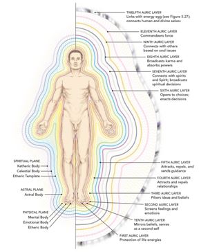 We can connect to the upper levels of metaphysical existence that are illustrated as the outer ‘auras’ in the graphic above. As can be seen in the additional auras situated outside the body, a good number of these higher states of consciousness exist as extended human functions which can be matched to the greater levels of spiritual ability available to us. First, we must learn to practice proven regeneration techniques.