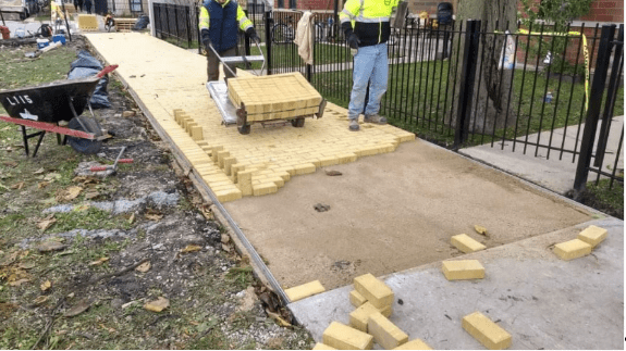 In another memorial to Baum’s heritage around the same time, Chicago’s nonprofit developer Bickerdike Redevelopment Corporation constructed a reproduction of the Yellow Brick Road at Humboldt Boulevard and Wabansia Avenue, in front of the home where L. Frank Baum wrote “The Wizard Of Oz”.