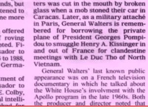One obituary, shown in the documentary and in part below, noted his appearance in a prior French documentary film in which he talked about “…White House involvement with the Apollo program in the late 1960s.”